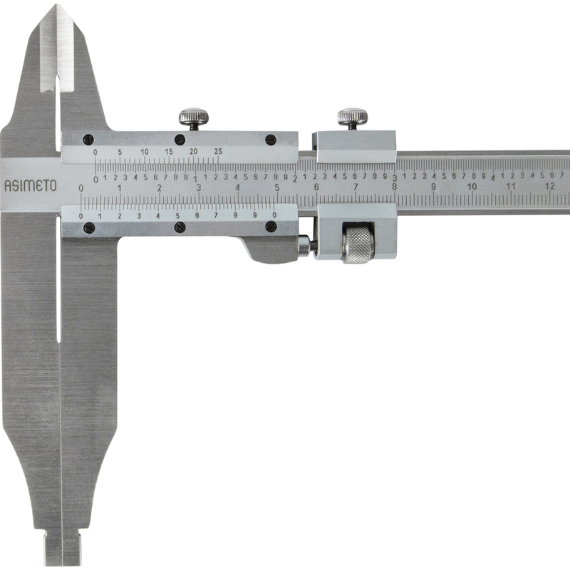 Штангенциркуль нониусный ASIMETO 302-12-8-П серии 302 из нержавеющей стали с губками для внутренних и наружных замеров. Предназначен для измерения линейных размеров малогабаритных деталей.