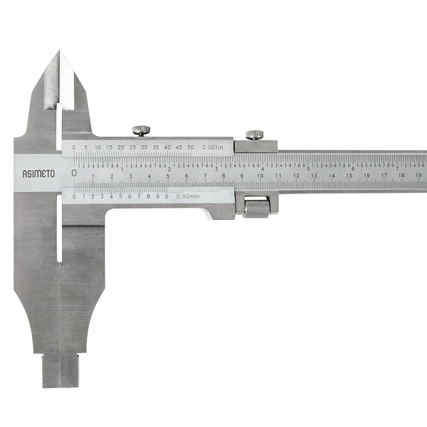 Штангенциркуль нониусный ASIMETO 302-20-0 серии 302 из нержавеющей стали с губками для внутренних и наружных замеров. Предназначен для измерения линейных размеров малогабаритных деталей.