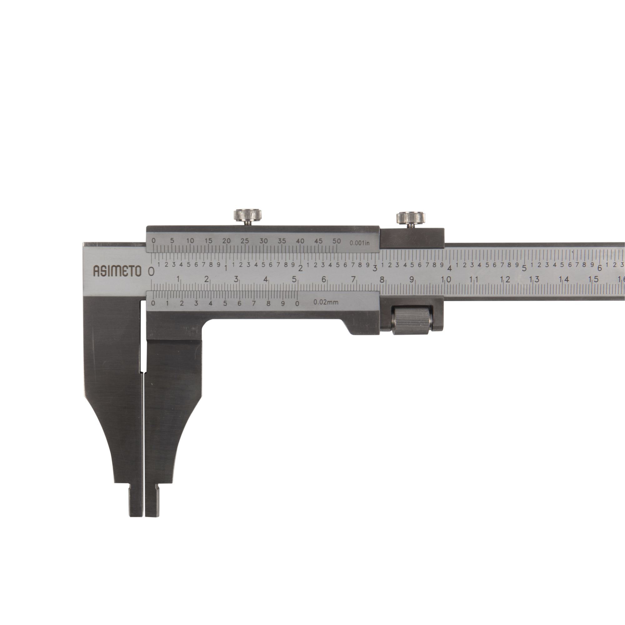 Штангенциркуль нониусный ASIMETO 311-18-0 серии 311 из нержавеющей стали с удлиненными губками для внутренних и наружных замеров. Внутренние губки имеют скругленную форму. Предназначен для измерения линейных размеров деталей.