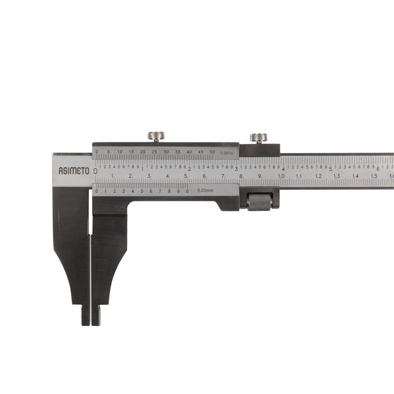 Штангенциркуль нониусный ASIMETO 311-20-0-П серии 311 из нержавеющей стали с удлиненными губками для внутренних и наружных замеров. Внутренние губки имеют скругленную форму. Предназначен для измерения линейных размеров деталей.
