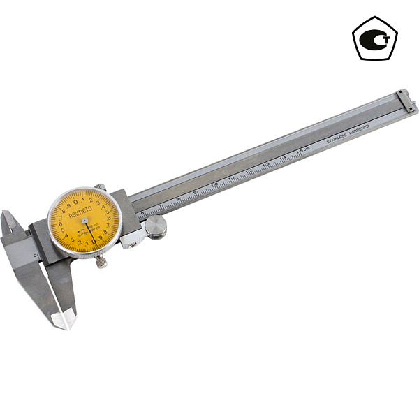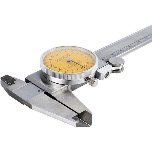 Штангенциркуль циферблатный ASIMETO 303-08-2 из нержавеющей стали предназначен для измерения линейных размеров малогабаритных деталей.