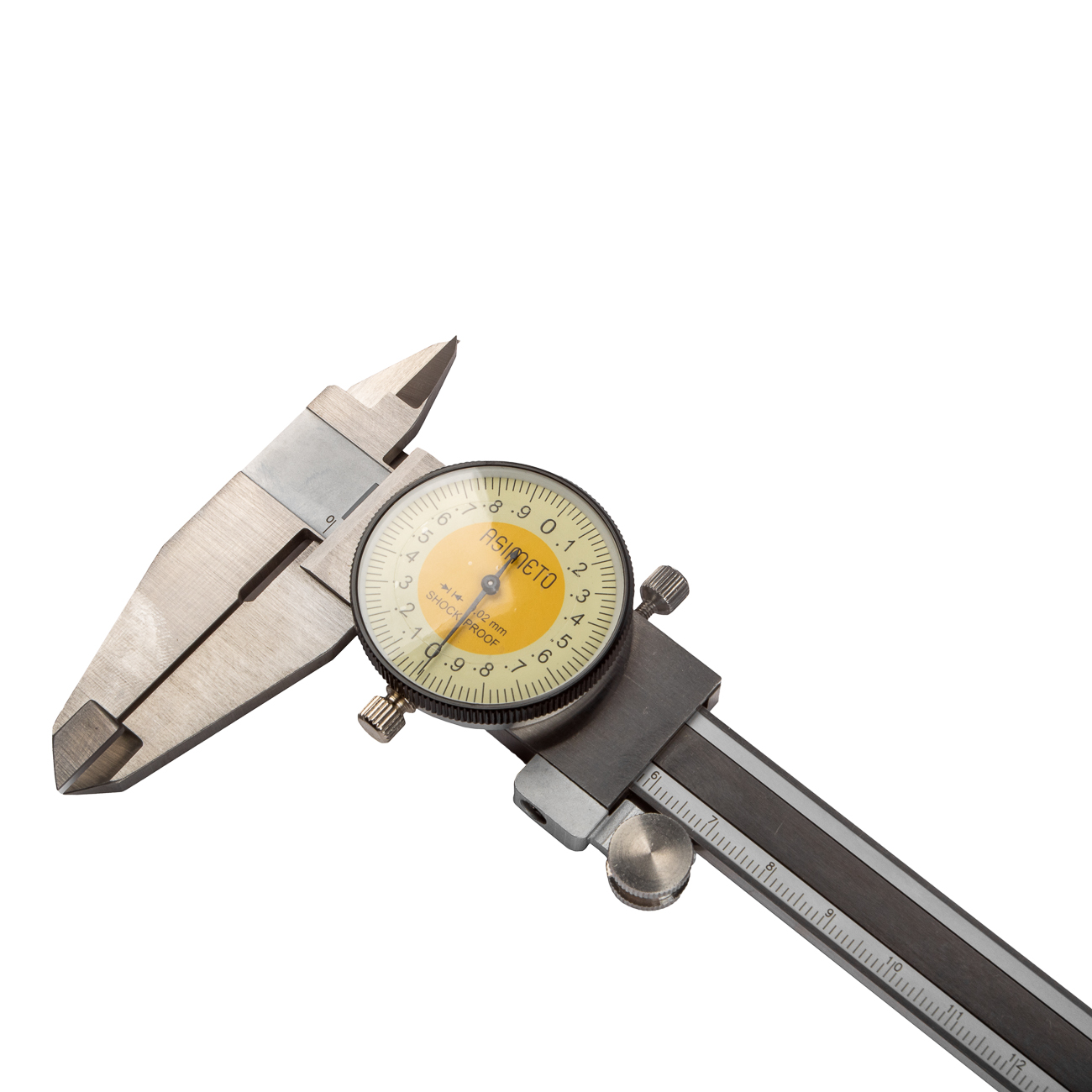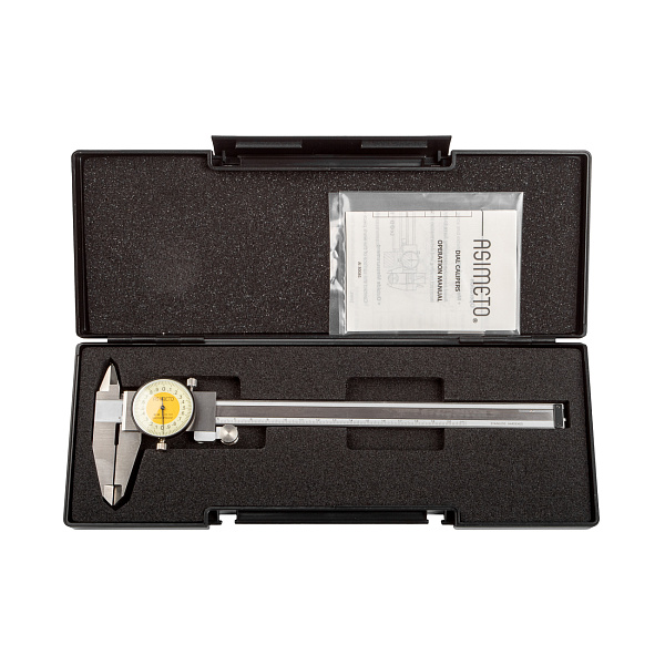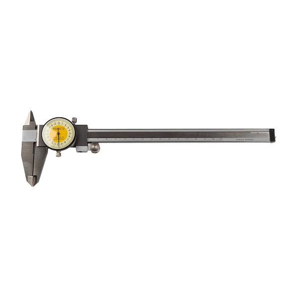 Штангенциркуль циферблатный ASIMETO 303-08-2 из нержавеющей стали предназначен для измерения линейных размеров малогабаритных деталей.