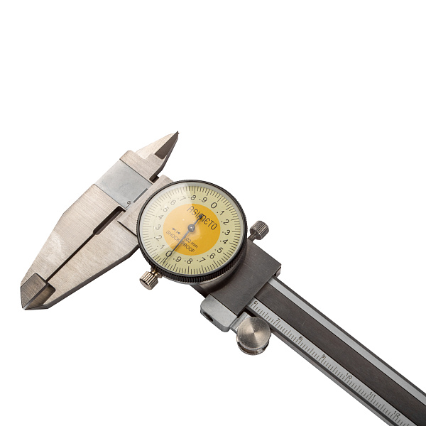 Имеет губки для внутренних и наружных замеров и плоский глубиномер. Рамка и циферблат имеют стопорные механизмы.