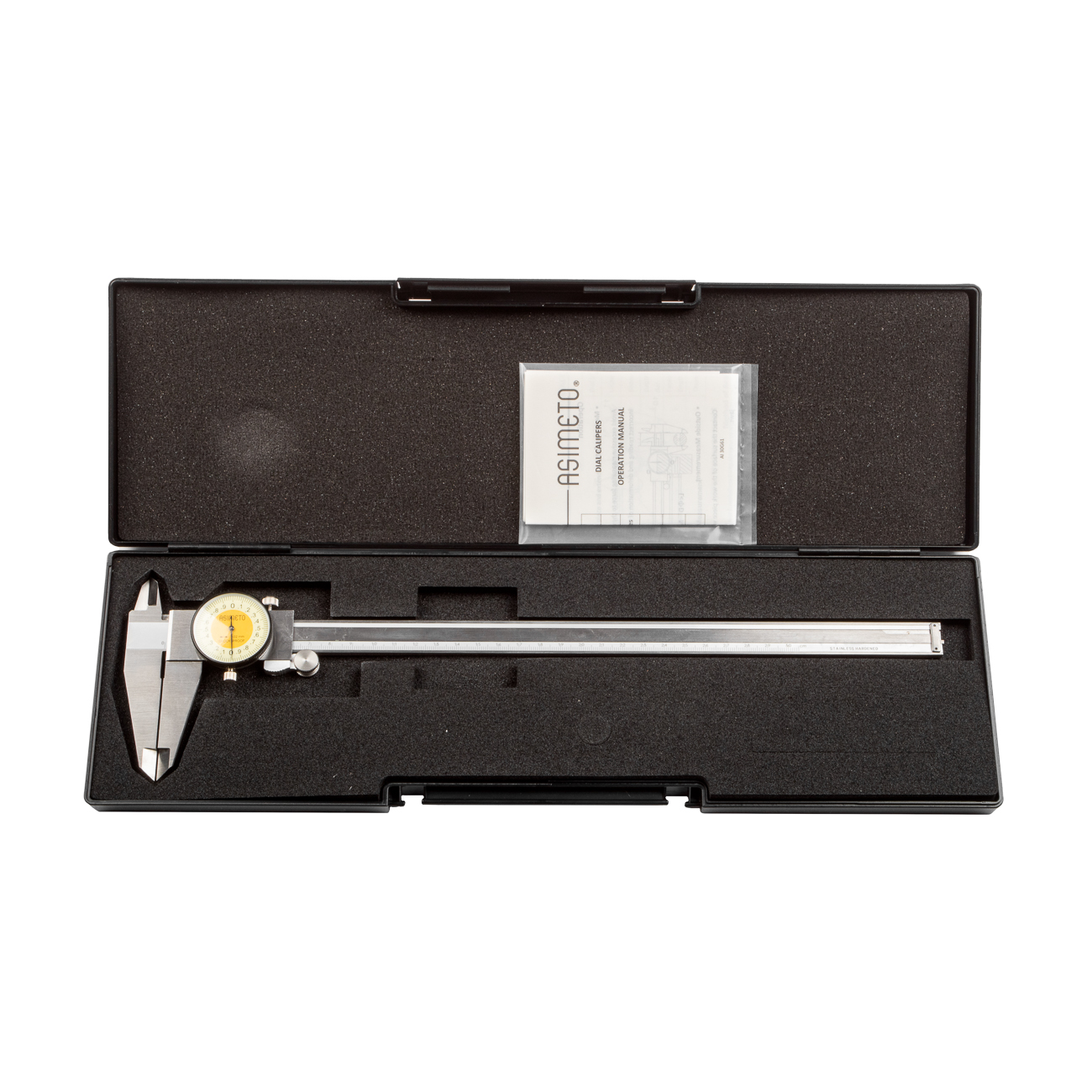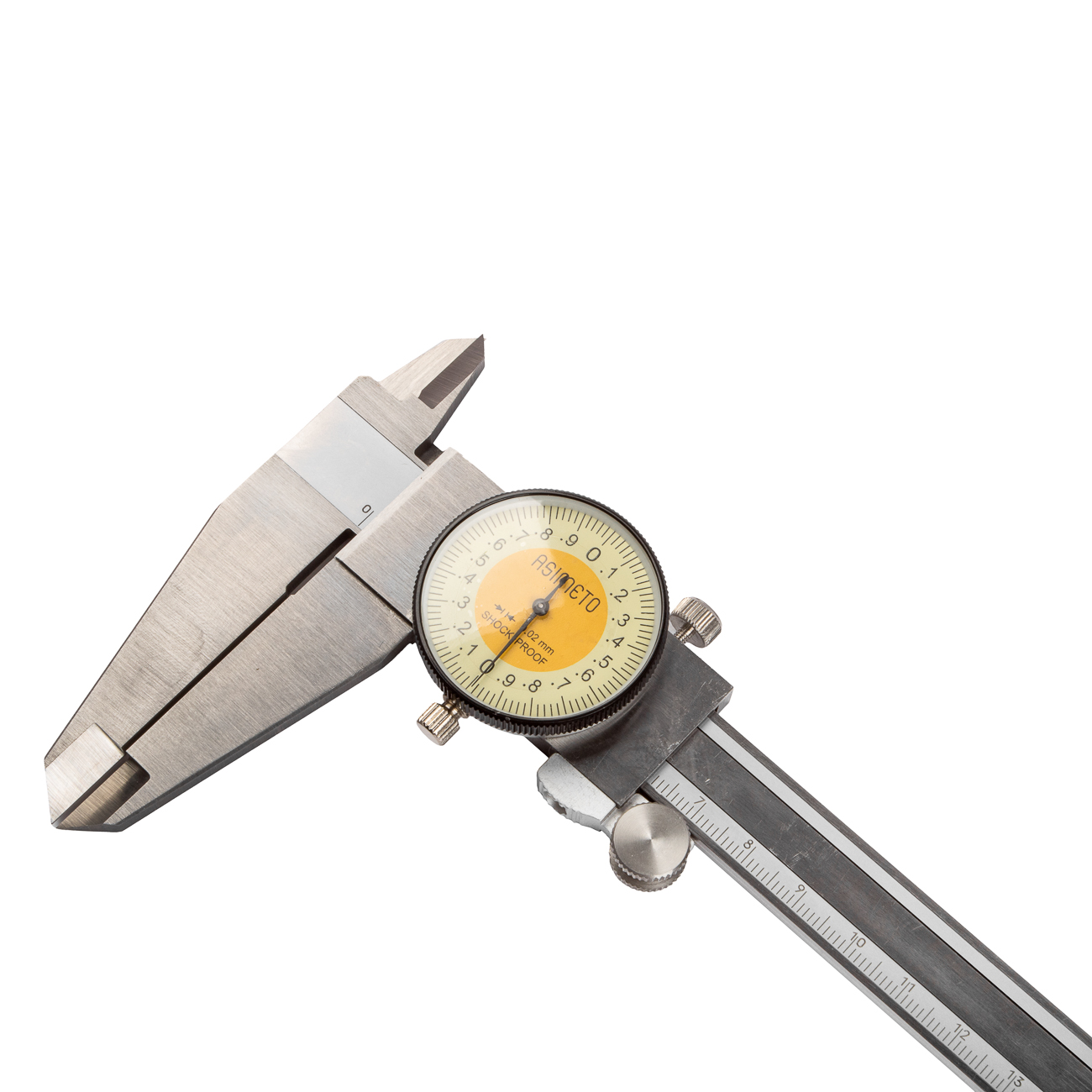 Штангенциркуль с круговой шкалой ASIMETO 303-12-2 из нержавеющей стали предназначен для измерения линейных размеров малогабаритных деталей.