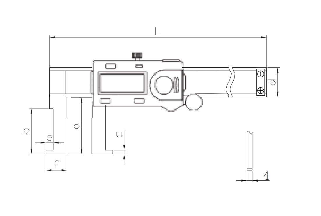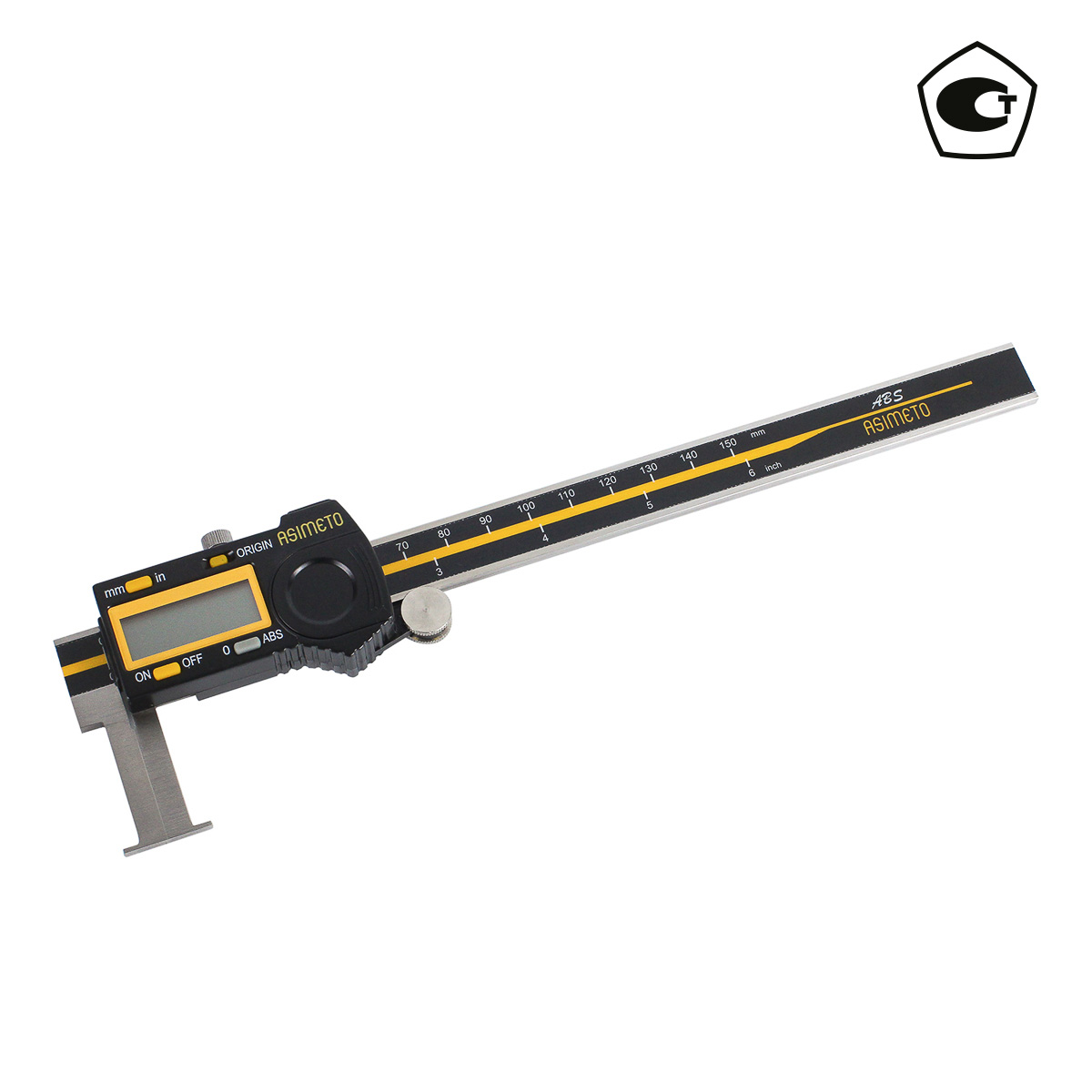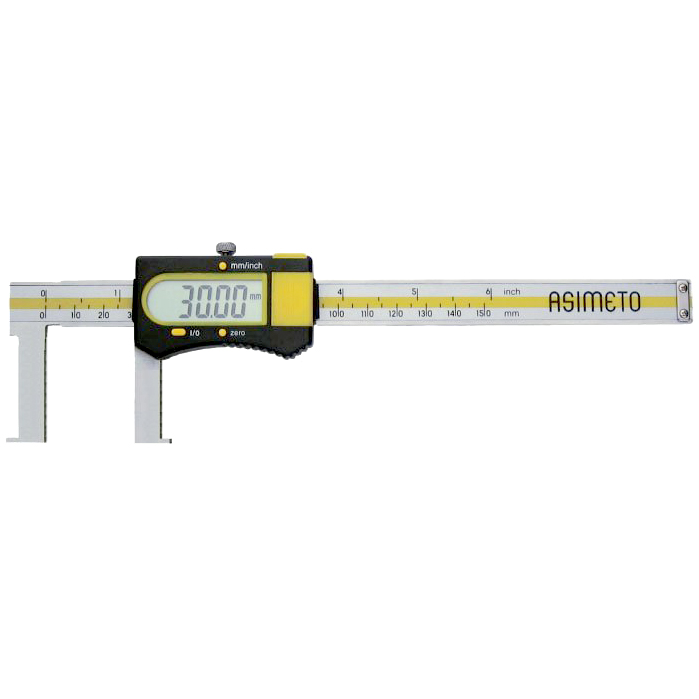 Цифровой штангенциркуль ASIMETO 309-06-4 для измерения внутренних канавок. При работе с цифровыми штангенциркулями результат измерений отображается на дисплее.