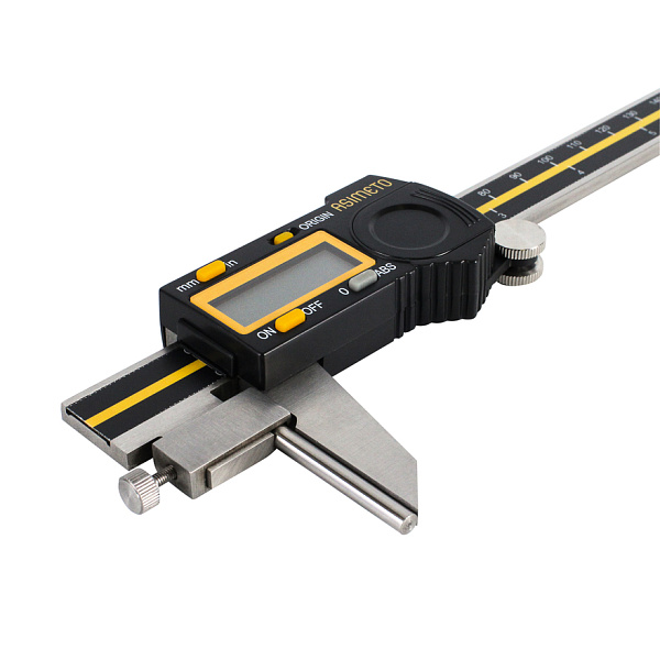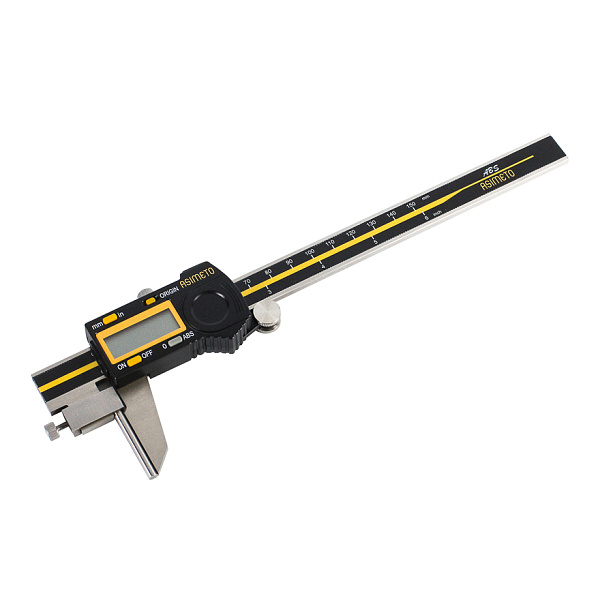 Цифровой штангенциркуль ASIMETO 316-08-2-П для измерения толщины стенок труб. При работе с цифровыми штангенциркулями результат измерений отображается на дисплее.