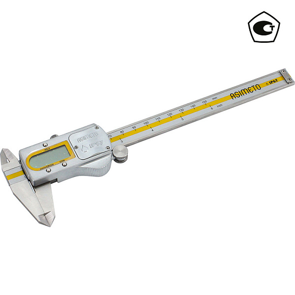 Штангенциркуль цифровой 0,01 мм, 0-150 мм, IP67, с поверкой, ASIMETO, 305-06-2-П