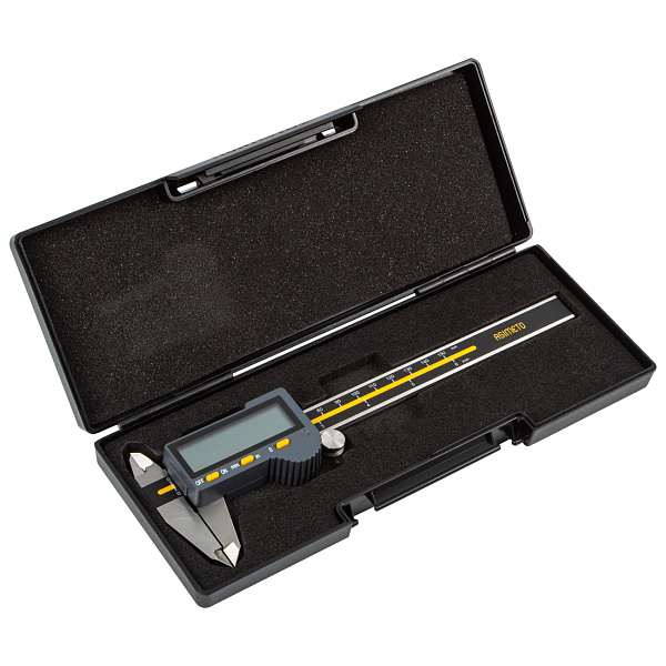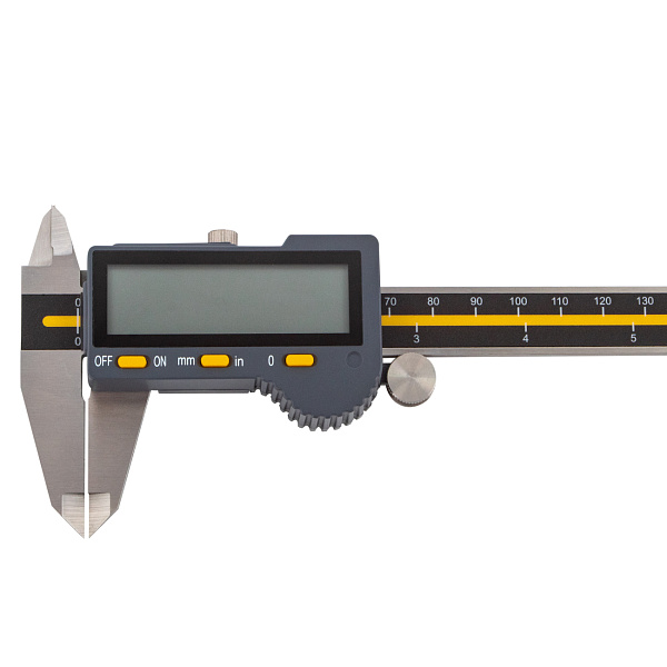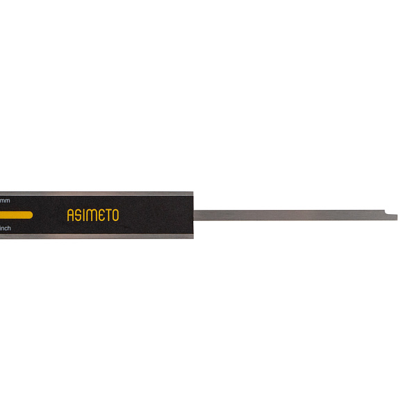 Цифровой штангенциркуль ASIMETO 306-12-5 для измерения наружных и внутренних размеров. При работе с цифровыми штангенциркулями результат измерений отображается на дисплее. Инструмент используют, когда данные необходимо получить быстро, без расчёта дополнительных шкал.