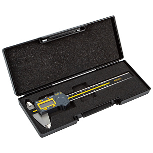 Цифровой штангенциркуль ASIMETO 306-12-6 для измерения наружных и внутренних размеров. При работе с цифровыми штангенциркулями результат измерений отображается на дисплее. Инструмент используют, когда данные необходимо получить быстро, без расчёта дополнительных шкал.