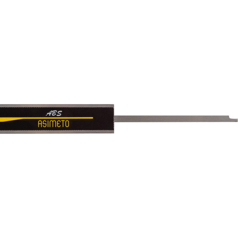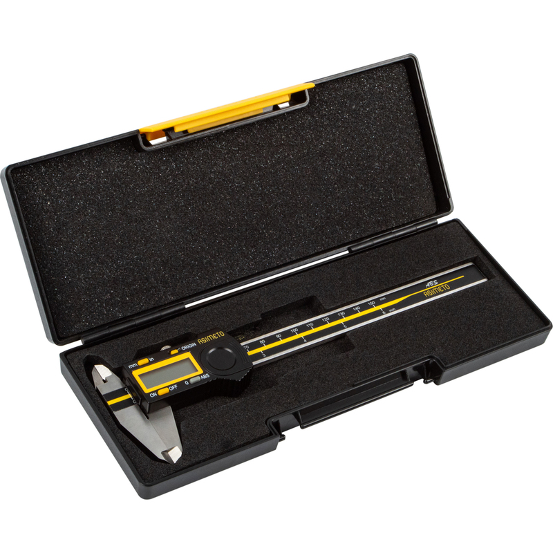 Цифровой штангенциркуль ASIMETO 307-62-2-П для измерения наружных и внутренних размеров. При работе с цифровыми штангенциркулями результат измерений отображается на дисплее. Инструмент используют, когда данные необходимо получить быстро, без расчёта дополнительных шкал.