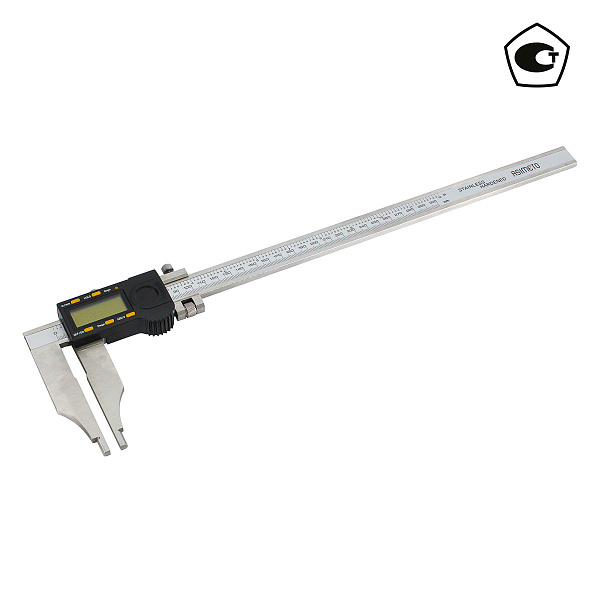 Цифровой штангенциркуль ASIMETO 315-20-6 для измерения наружных и внутренних размеров. При работе с цифровыми штангенциркулями результат измерений отображается на дисплее. Инструмент используют, когда данные необходимо получить быстро, без расчёта дополнительных шкал.