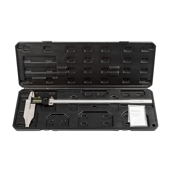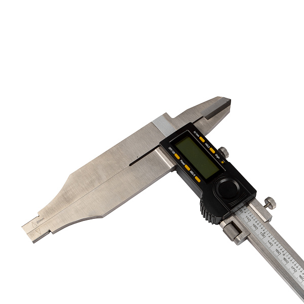 Цифровой штангенциркуль ASIMETO 315-20-8 для измерения наружных и внутренних размеров. При работе с цифровыми штангенциркулями результат измерений отображается на дисплее. Инструмент используют, когда данные необходимо получить быстро, без расчёта дополнительных шкал.