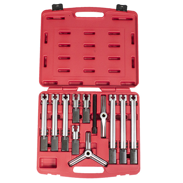 Набор съемников с двумя и тремя захватами Licota ATB-1141H “американского” типа. Комплект из 12 предметов в пластиковом кейсе для демонтажа подшипников, шкивов, зубчатых колес и других деталей, имеющих посадку с натягом. Ширина захвата - до 140 мм.