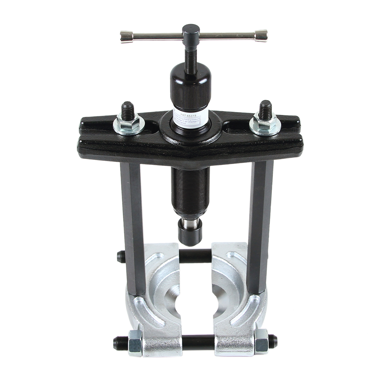 За счет своей конструкции, съемник-сепаратор захватывает деталь плотнее, чем съемник, оснащенный лапами. Захваты стягиваются с помощью винтов, обеспечивая прочную фиксацию съемника на детали. Набор удлинителей дает возможность работать с деталями разных размеров.