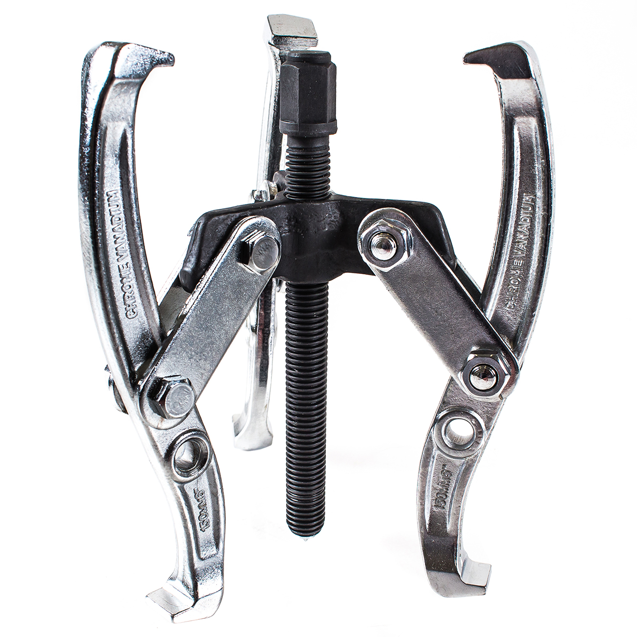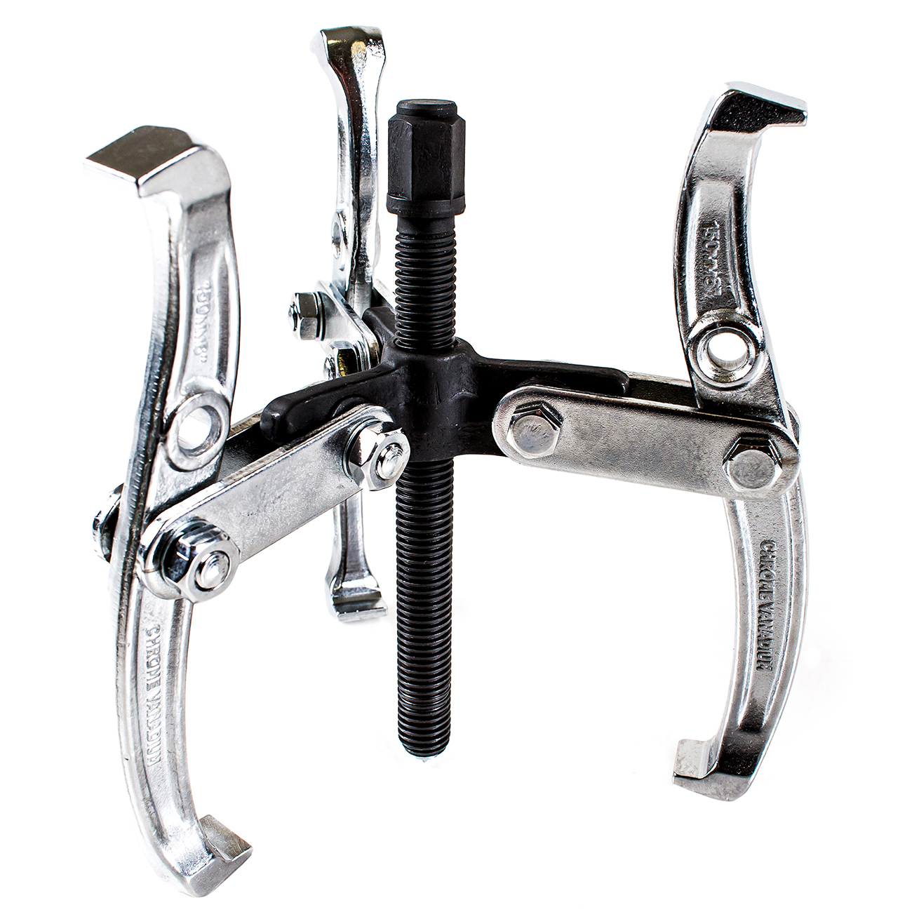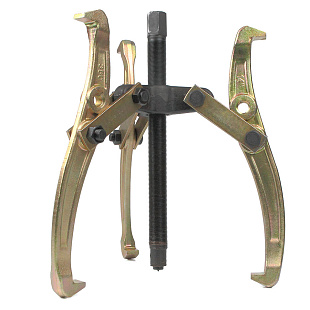 Поворотные лапы имеют переставляемые крюки-захваты, что дает возможность как внешнего, так и внутреннего захвата деталей. По сравнению с двухлапыми съемниками, трехлапые дают более плотный захват детали.