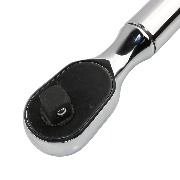 Трещотка изготовлена из закаленной хром-ванадиевой стали, устойчивой к механическим нагрузкам. Усиленная конструкция способна выдержать нагрузки до 70 кг, что облегчает демонтаж “прикипевшего” или закрученного с усилием крепежа.