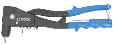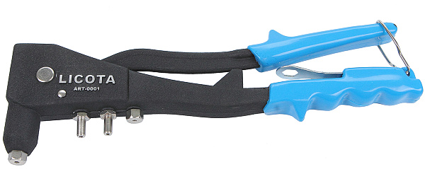 Заклепочник ручной профессионального уровня ART-0001 LICOTA предназначен для работы с алюминиевыми заклепками. Корпус заклепочника изготовлен из прочного сплава методом литья под давлением. Оснащен четырьмя сменными насадками для заклепок диаметром 2,4; 3,2; 4,0 и 4,8 мм. Захваты выполнены из высокоуглеродистой стали. Механический вытяжной заклепочник ART-0001 незаменим при соединении листовых материалов в тех случаях, когда доступ к обратной стороне листов затруднен, или невозможен.