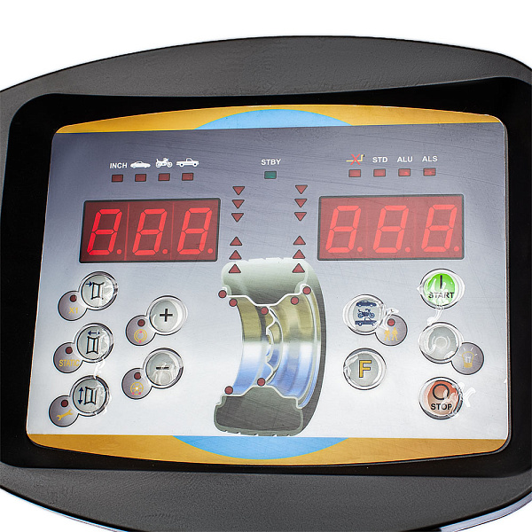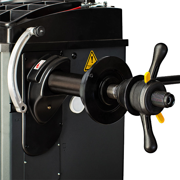 Балансировочный вал диаметром 40 мм оснащен надежными подшипниками, что гарантирует высокую точность измерения и низкий уровень шума при работе. Боковая диодная подсветка улучшает обзор оператора. На рабочем столе размещены эргономичные отделения под грузики. Педаль фиксации колеса для более удобной установки груза.