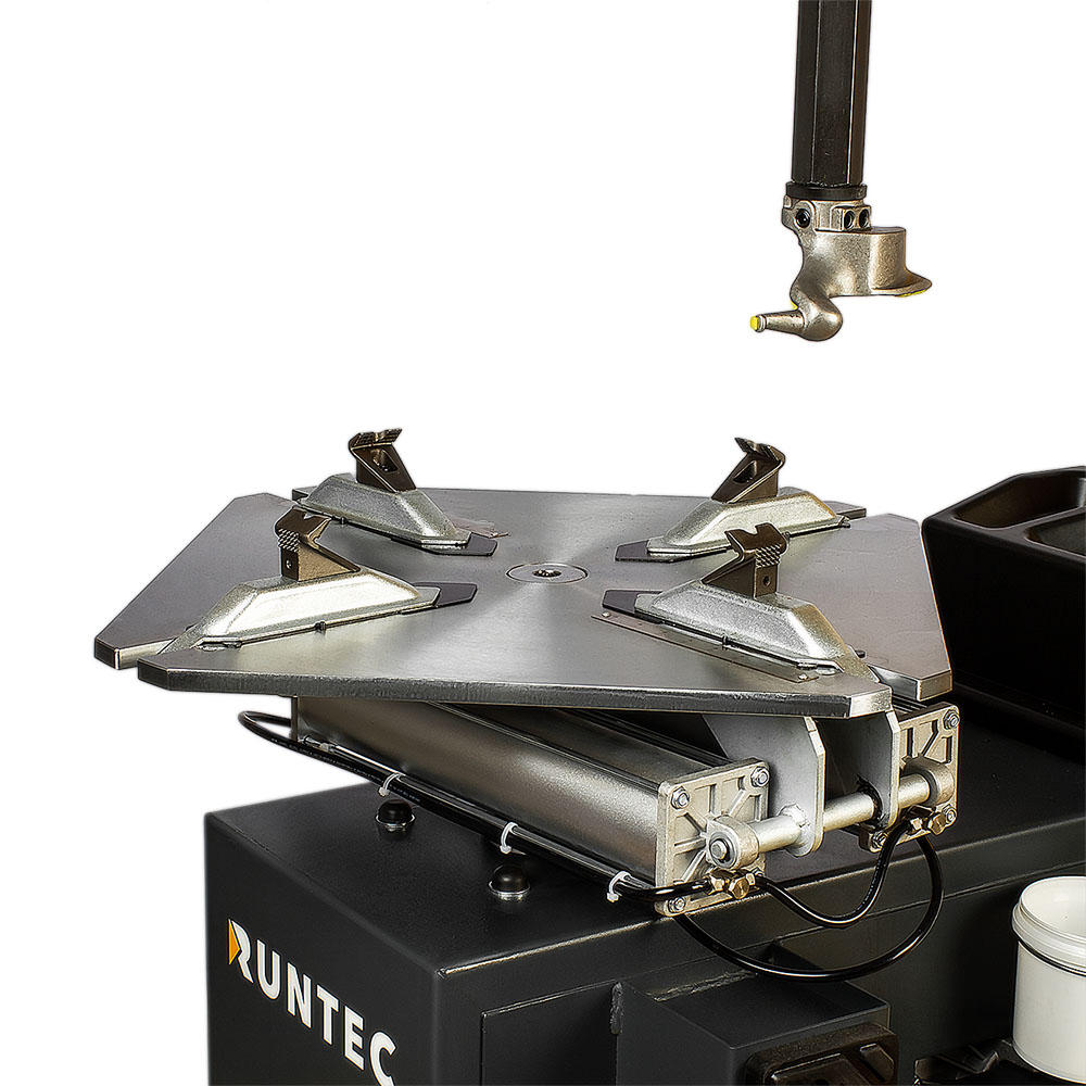 Для более эффективной работы применен четырехкулачковый самоцентрирующийся механизм поворотного стола, работающий от пневмопривода. Кулачки переставляются в 3 положениях, что позволяет работать с большинством дисков.