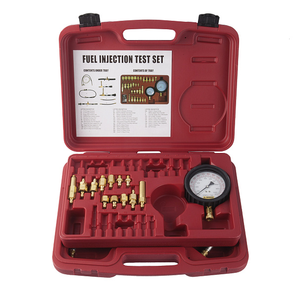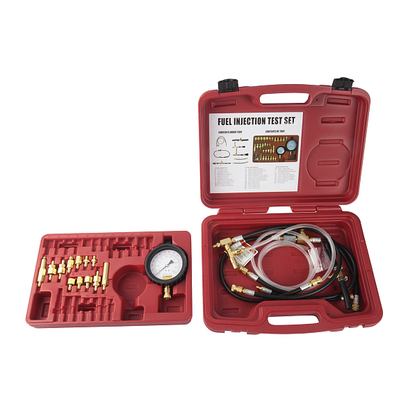 Комплект из 18 предметов в пластиковом кейсе позволяет выявить повреждение топливной магистрали, топливного фильтра, топливного насоса и регулятора.