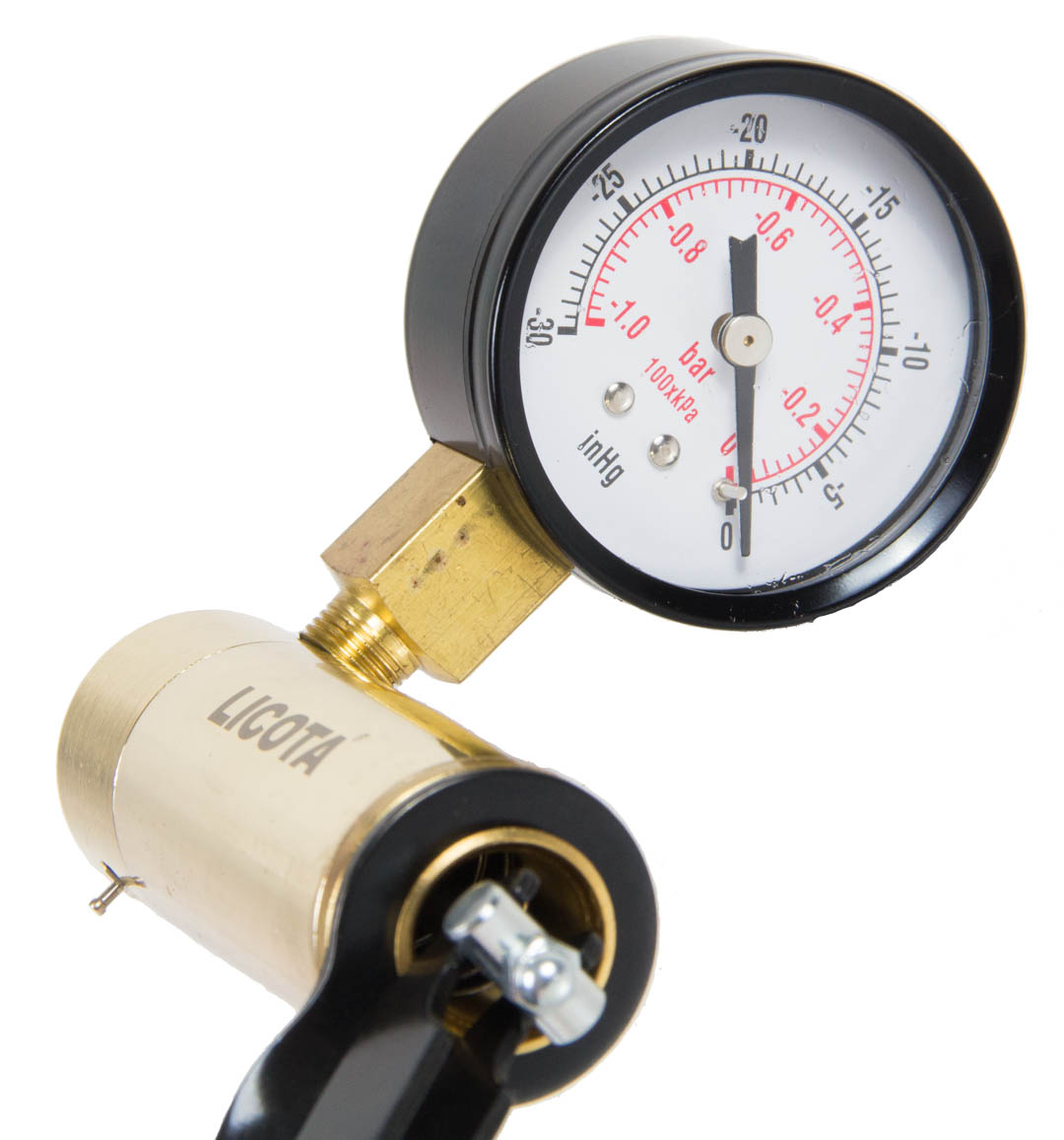Вакуумметр Licota ATP-2103 - приспособления для проверки герметичности различных систем автомобиля. Комплект из 11 предметов в пластиковом кейсе позволяет диагностировать неисправности: топливной системы, системы зажигания, тормозной системы, трансмиссии, системы охлаждения и кондиционирования.