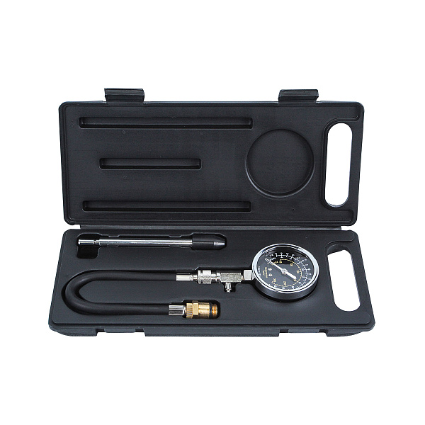 Компрессометр бензиновый с гибкой и жесткой насадкой Licota ATP-2067. Комплект из 3 предметов в пластиковом кейсе позволяет диагностировать герметичность камеры сгорания путем измерения компрессии (максимального давления воздуха) в камере сгорания в конце такта сжатия.
