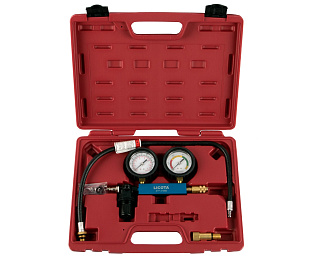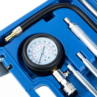 Набор из 8 предметов в пластиковом кейсе предназначен для измерения давления бензиновых двигателей легковых автомобилей и мотоциклов. Позволяет диагностировать герметичность камеры сгорания путем измерения компрессии (максимального давления воздуха) в камере сгорания в конце такта сжатия.