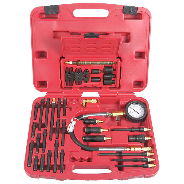 Компрессометр дизельный универсальный Licota ATP-2177 для большинства марок. Набор из 27 предметов в пластиковом кейсе предназначен для измерения компрессии дизельных двигателей. Позволяет диагностировать герметичность камеры сгорания путем измерения компрессии (максимального давления воздуха) в камере сгорания в конце такта сжатия.