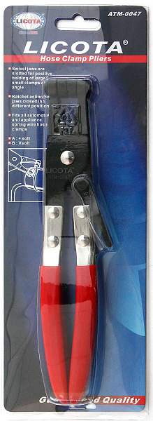 Предназначены для работы с многоразовыми самозажимными пружинными хомутами топливных, масляных и водяных шлангов. Поворотные губки обеспечивают доступ к труднодоступным хомутам. Трещоточный механизм с 5-ю положениями позволяет зафиксировать хомут в разжатом состоянии. Губки клещей имеют прорези формы "+".