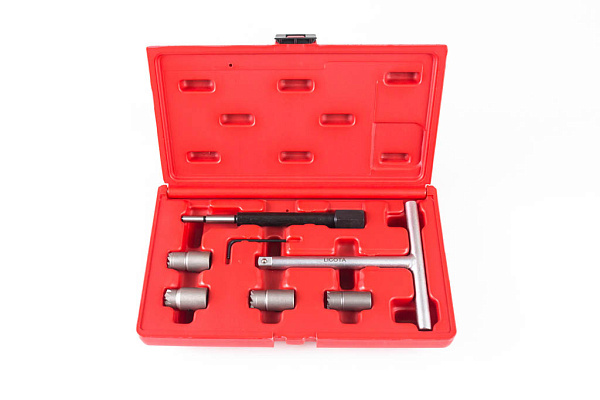 Комплект из 7 приспособлений в пластиковом кейсе подходит для двигателей с форсунками Bosch, Delphi, устанавливаемыми на автомобили марок Mercedes-Benz, BMW, Fiat, Iveco, PSA, Renault и др.