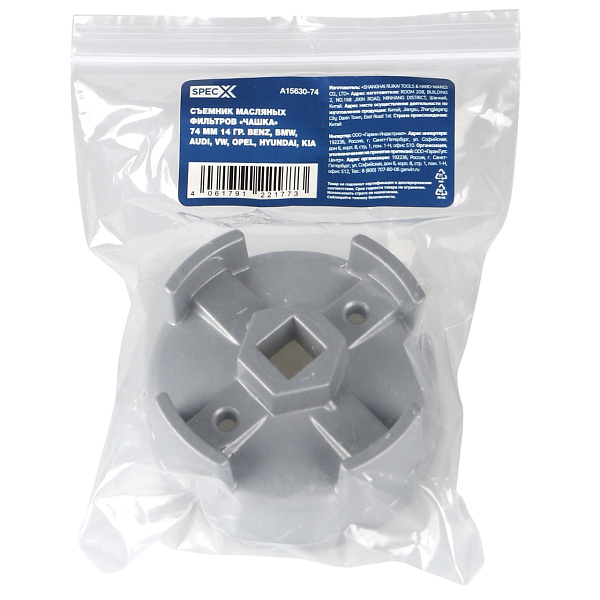 Съемник масляных фильтров "чашка" 74 мм 14 гр. BENZ, BMW, AUDI, VW, OPEL, HYUNDAI, KIA, SpecX, A15630-74