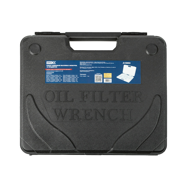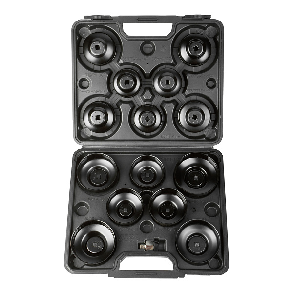 Набор чашек для съема масляных фильтров SPECX A15653 для демонтажа масляных фильтров автомобильных двигателей. Комплект из 15 предметов в пластиковом кейсе.