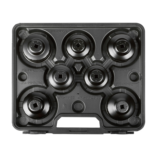 Пластиковый кейс облегчает хранение и транспортировку инструмента. На каждой чашке имеется маркировка ее размера, которая дублируется на ячейке хранения в кейсе.