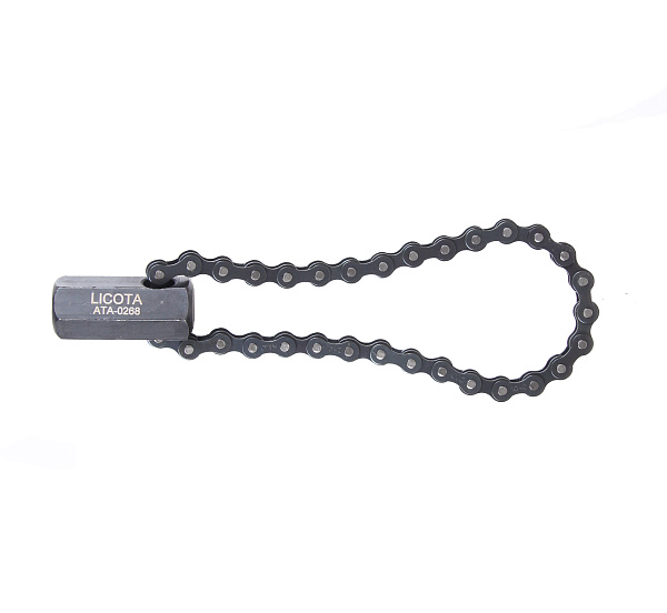 Съемник масляных фильтров цепной Licota ATA-0268 для демонтажа масляных фильтров автомобильных двигателей. Состоит из привода и цепи.