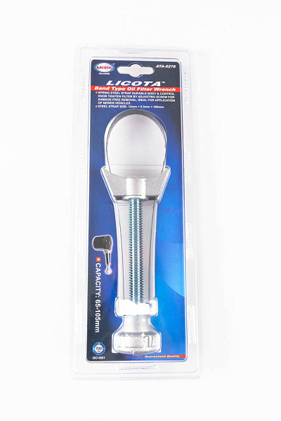 Съемник масляных фильтров ленточный Licota ATA-0278 для демонтажа масляных фильтров автомобильных двигателей. Состоит из винтового механизма и стальной захватной ленты.
