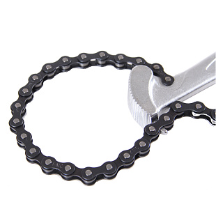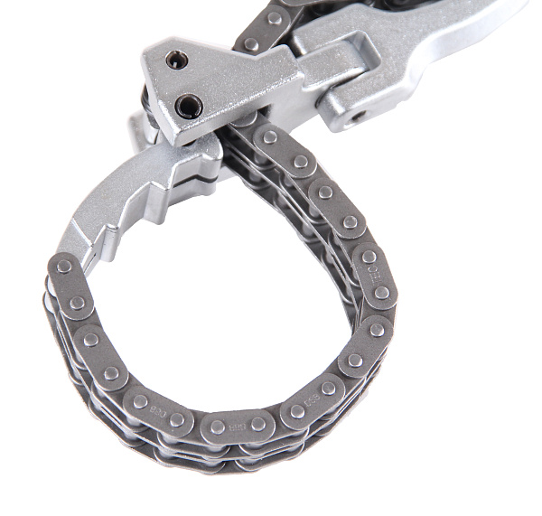 Регулируемая длина цепи обеспечивает крепкий обхват фильтра в процессе демонтажных работ. Наличие шарнира позволяет вести работы в ограниченном пространстве.