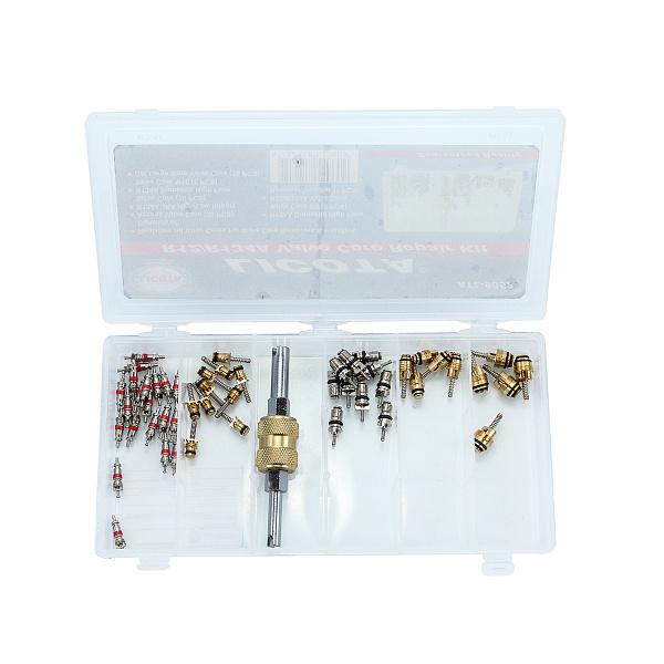 Набор из 51 предмета в пластиковом кейсе используется для замены ниппелей в сервисных штуцерах автомобиля системы A/C.