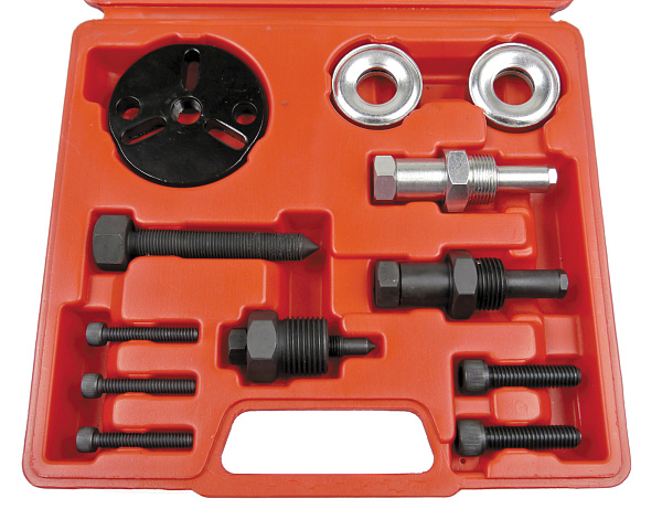 Набор для ремонта и обслуживания компрессора кондиционера Licota ATL-9097A применяется для фиксации при разборке и сборке муфты компрессора кондиционера, а также для замены уплотнений и сервисного обслуживания.