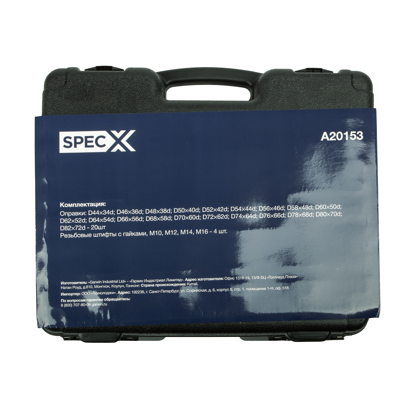 Универсальный набор оправок для запрессовки и выпрессовки сайлентблоков SPECX A20153. Предназначен для демонтажа и установки сайлентблоков, подшипников и втулок. Диаметр внутренних оправок - от 34 до 72 мм. Диаметр наружных оправок - от 44 до 82 мм.