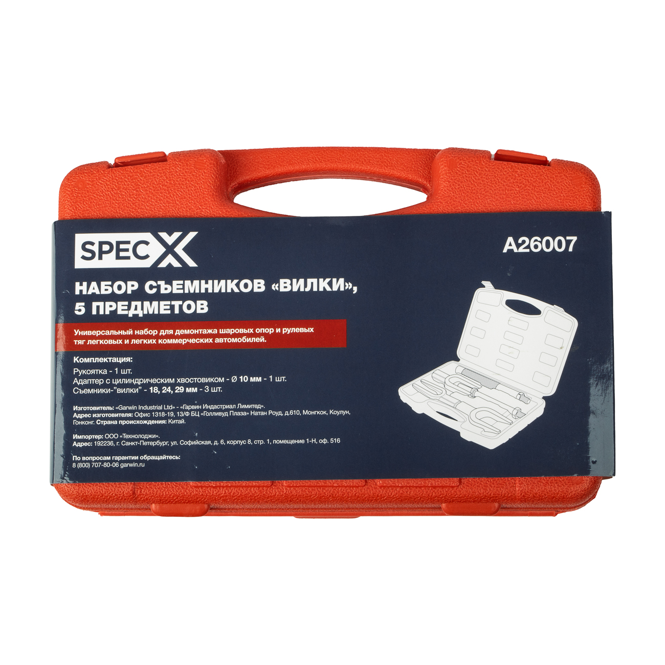 Набор съемников-"вилок" SPECX A26007. Комплект из 5 предметов в пластиковом кейсе. Универсальный набор для демонтажа шаровых опор и рулевых тяг легковых и легких коммерческих автомобилей.