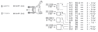 Внешний / внутренний диаметры опорных стаканов и оправок: