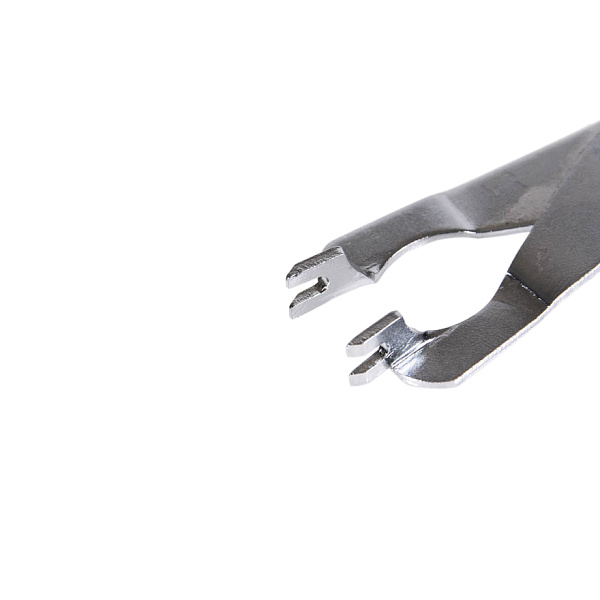 Передняя часть инструмента имеет выемку, которая плотно захватывает трос и фиксирует его с помощью язычка, расположенного на ручке.