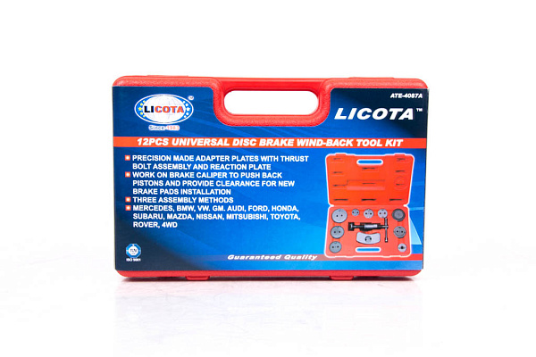 Комплект для развода поршней тормозных цилиндров Licota ATE-4087A предназначен для быстрой и безопасной установки тормозных колодок.