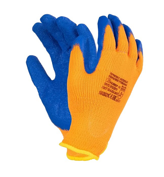 Перчатки трикотажные с рифлёным латексным покрытием утеплённые ICE оранжевые, ТЕХРИМ, 501083080F