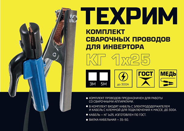 Длина обоих кабелей составляет 5 метров. Имеет кабельную вилку 35-50.